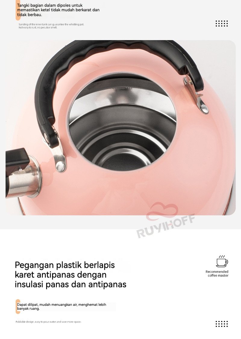 Ketel / Ceret / Teko yang terbuat dari bahan stainless steel, anti karat. Akan mengeluarkan bunyi seperti siulan jika air mendidih.