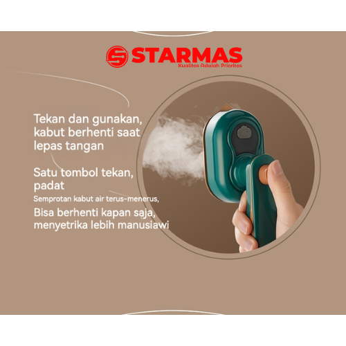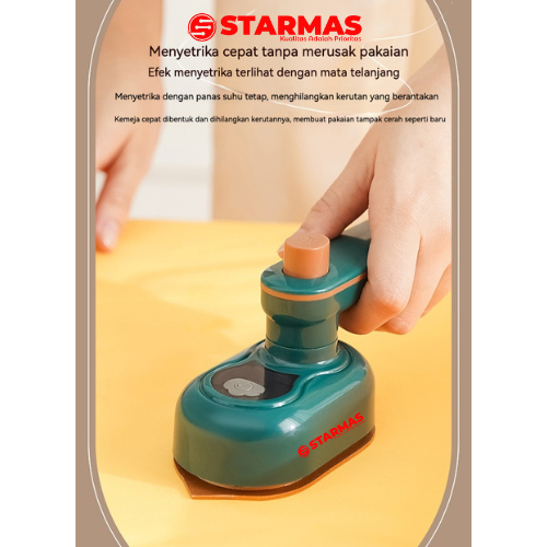 Ingin punya setrika uap portabel yang mudah dibawa bepergian? Kenalkan Setrika Uap Mini Portable Iron Steam Travel Low watt New Ori STARMAS Tangki Air yang Dapat Dilepas! Setrika uap ini cepat panas hanya dalam 20 detik dengan suhu konstan 150°C sehingga sangat efektif menghaluskan pakaian. Kapasitas penyimpanan pelembut pakaian cukup besar dan mudah dipegang tanpa panas saat dipegang.